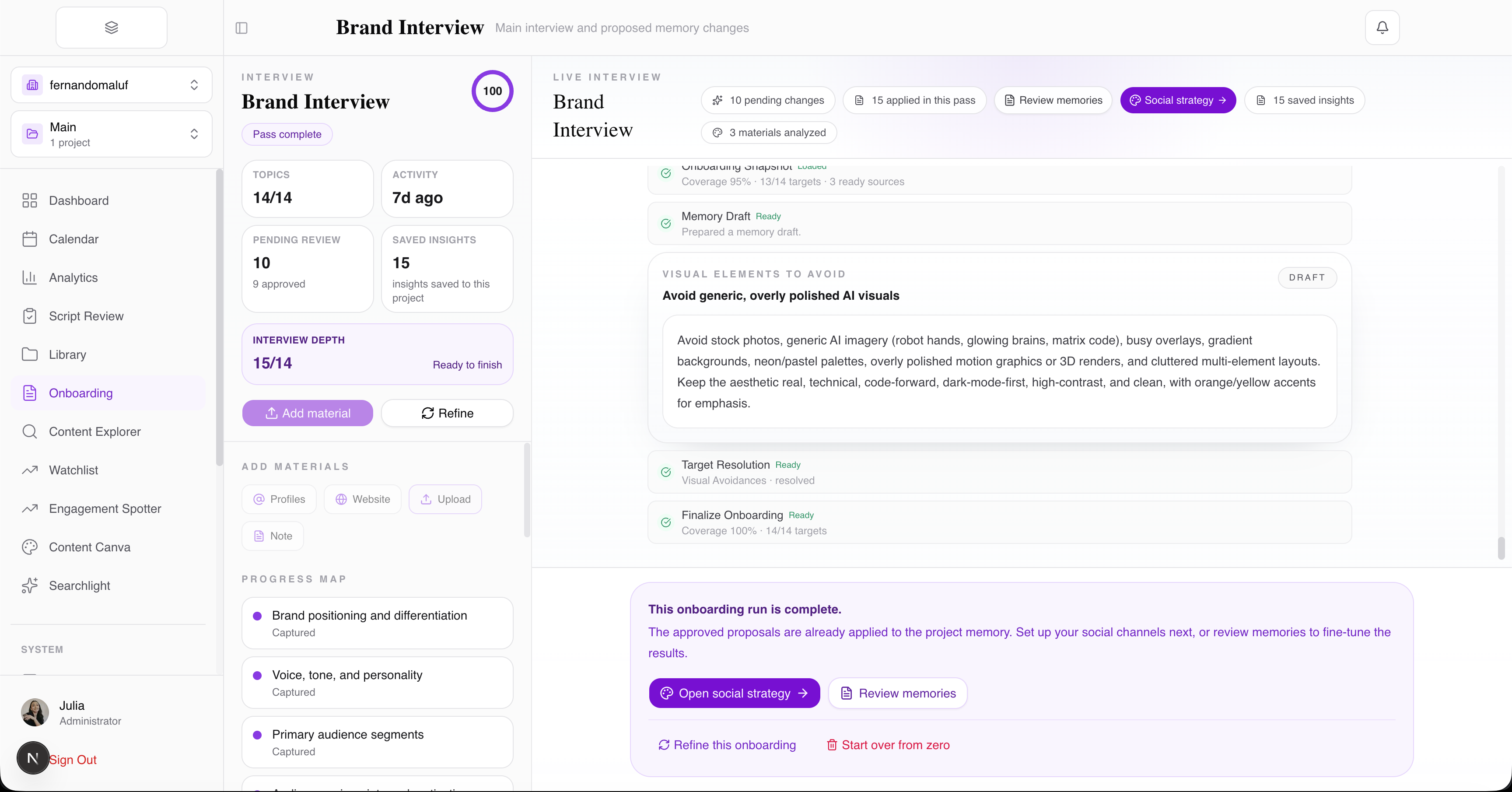 A guided setup that learns your brand, tone, and goals to personalize your entire content workflow from day one.