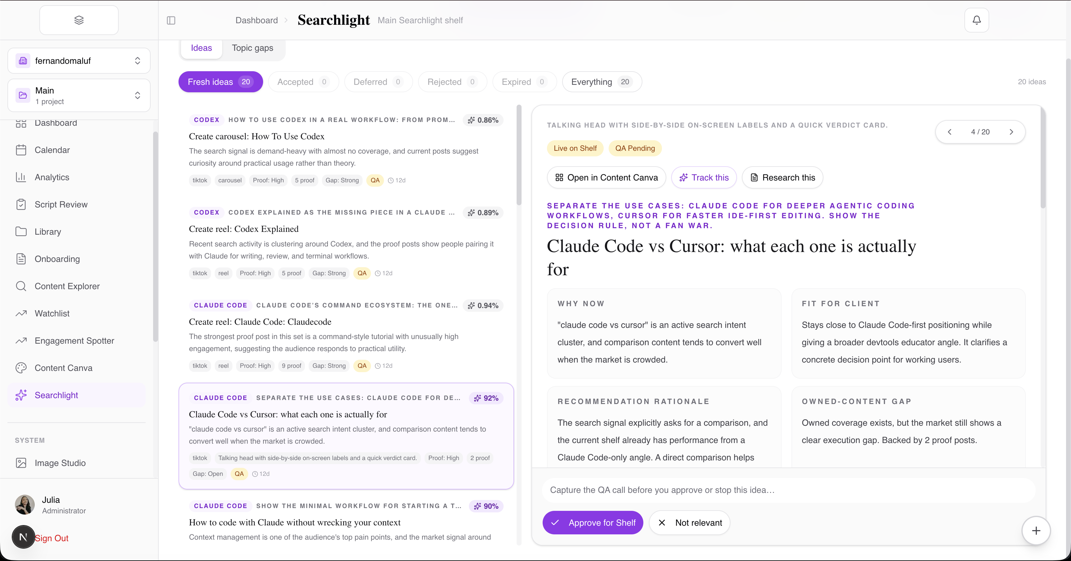 - Searchlight and Radar continuously surface trending topics, competitor insights, and content opportunities in your niche — so you never run out of ideas.